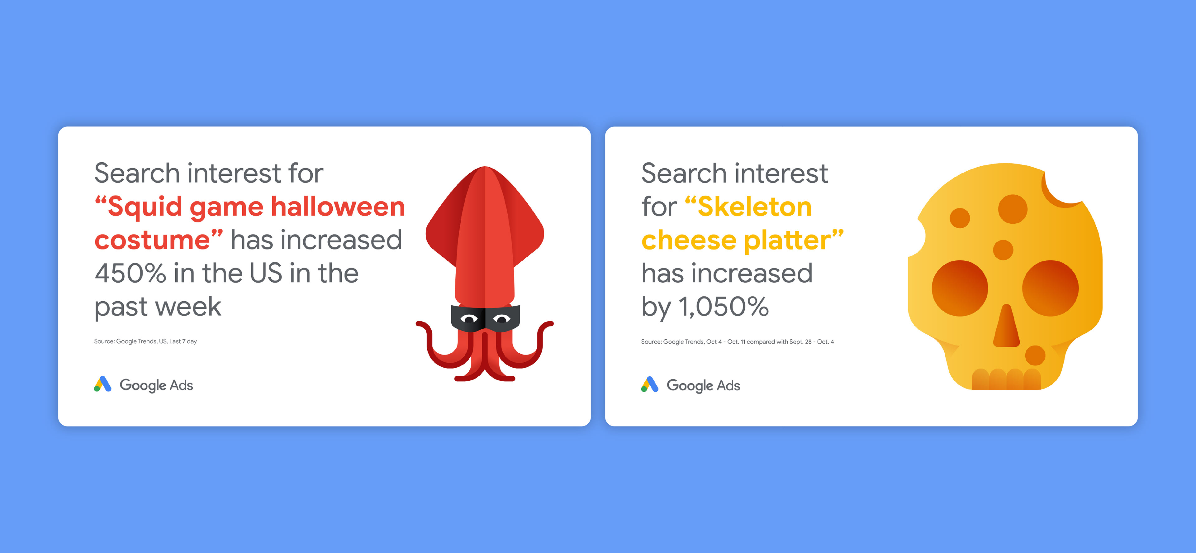 Illustrated social posts for Google Ads. Helped highlight top shopping trends with a visual approach that made the data fun and engaging, adding splashes of humour and charm.